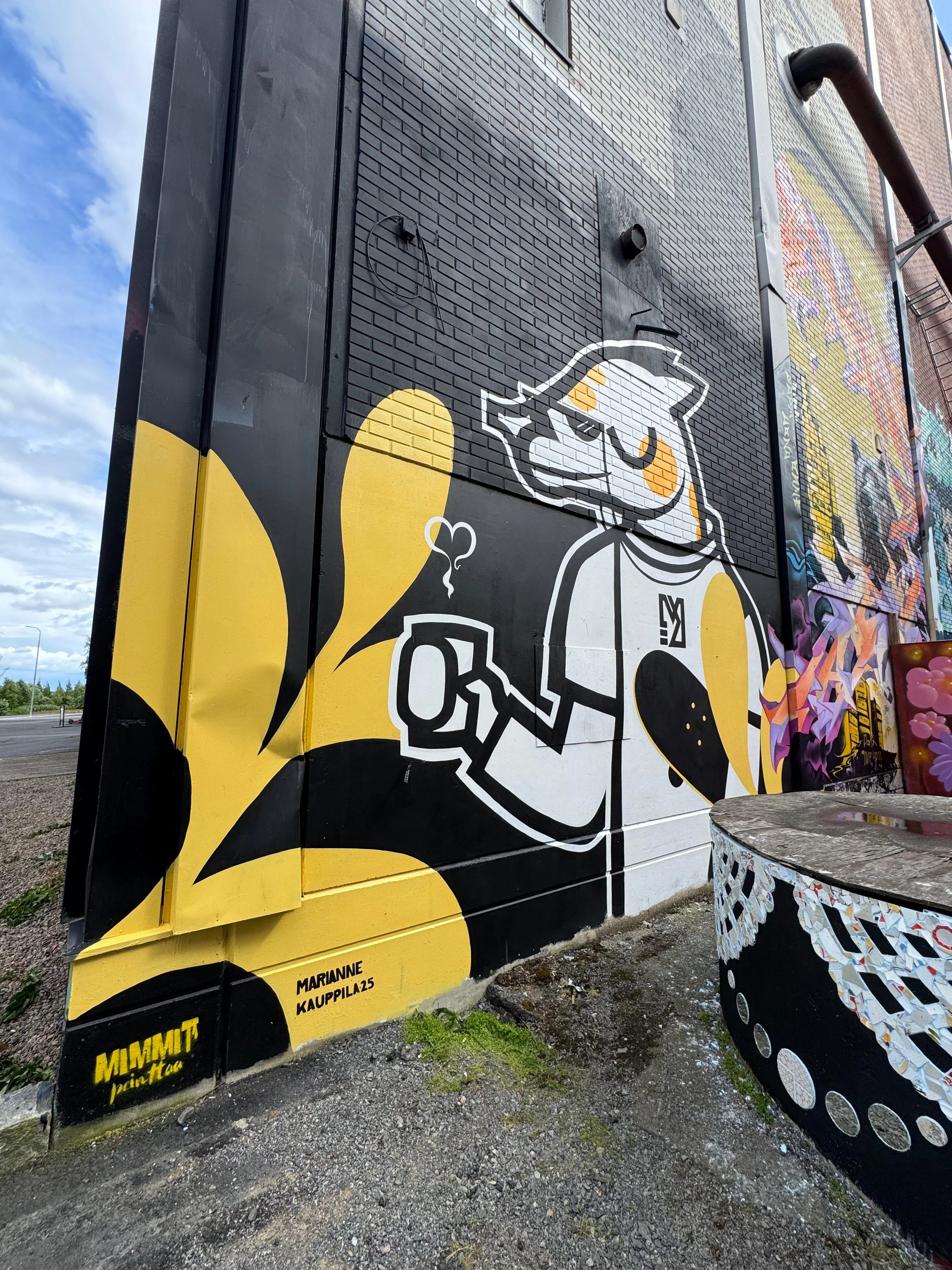 Marianne Kauppila es una artista visual originaria de Oulu, Finlandia, especializada en murales. Su estilo distintivo se basa en formas gráficas y líneas fuertes y limpias. En sus obras, la naturaleza se fusiona con el mundo humano, creando un universo propio en un tiempo suspendido, sin presencia humana. Sus composiciones, marcadamente bidimensionales, presentan escenas estáticas y, en ocasiones, inexpresivas que reflejan su visión de la vida y del entorno que la rodea. Además de murales, Marianne pinta numerosas obras destinadas a exposiciones, donde sigue desarrollando su lenguaje visual único.
